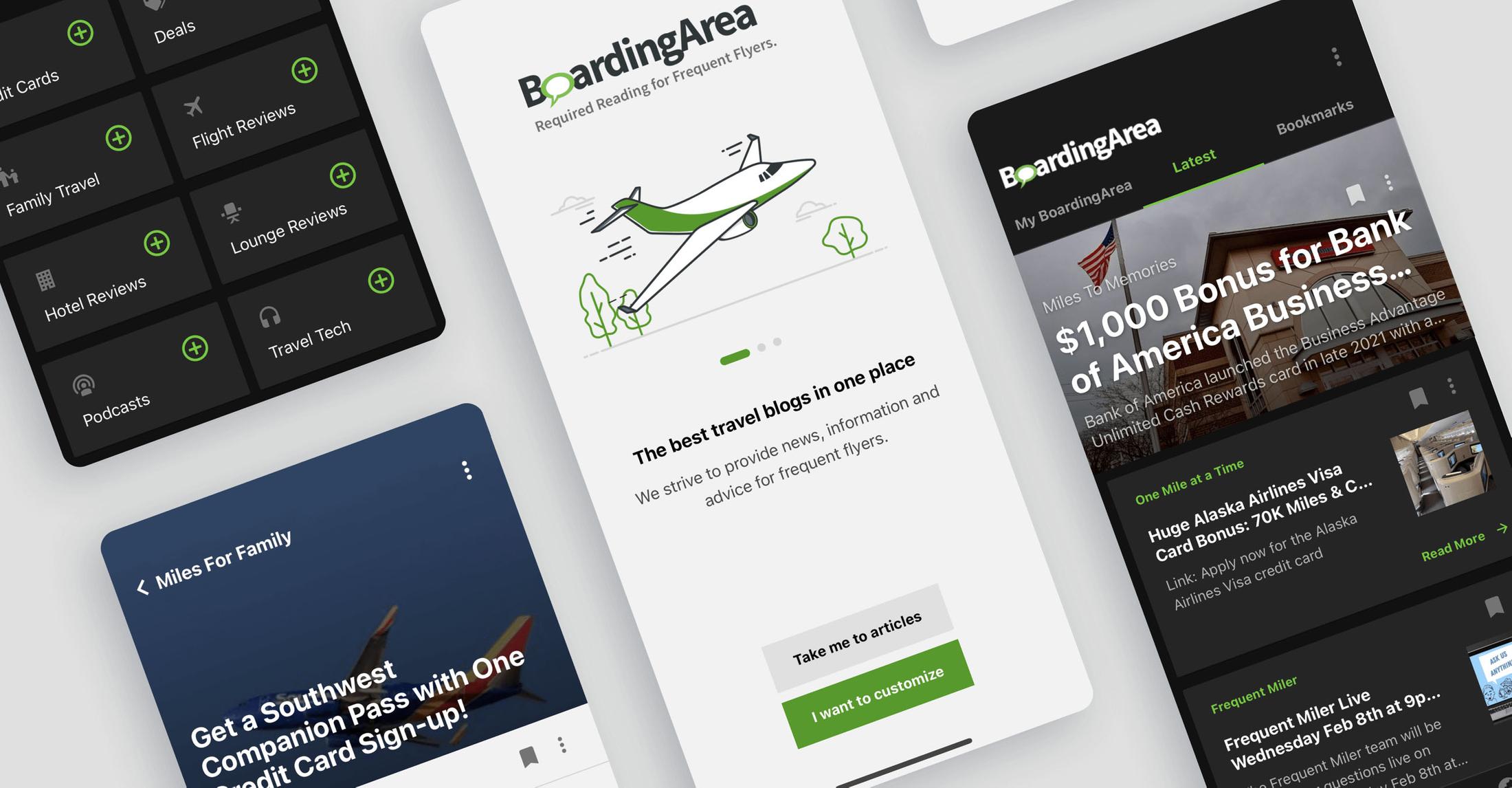 BoardingArea was created by the same people who founded some of the most popular business travel and frequent flyer websites on the internet and have continued for 25 years to deliver the best travel blogs all in one place. With an avid readership of flyers visiting their site on the daily for their curated news, the BoardingArea team knew it was time to bring a native app to their audience. We were approached to bring that vision to the app stores with an app that could 1) deliver curated news in a more easily filtered experience 2) be intuitive to navigate between their different topics and 3) increase their daily readership.