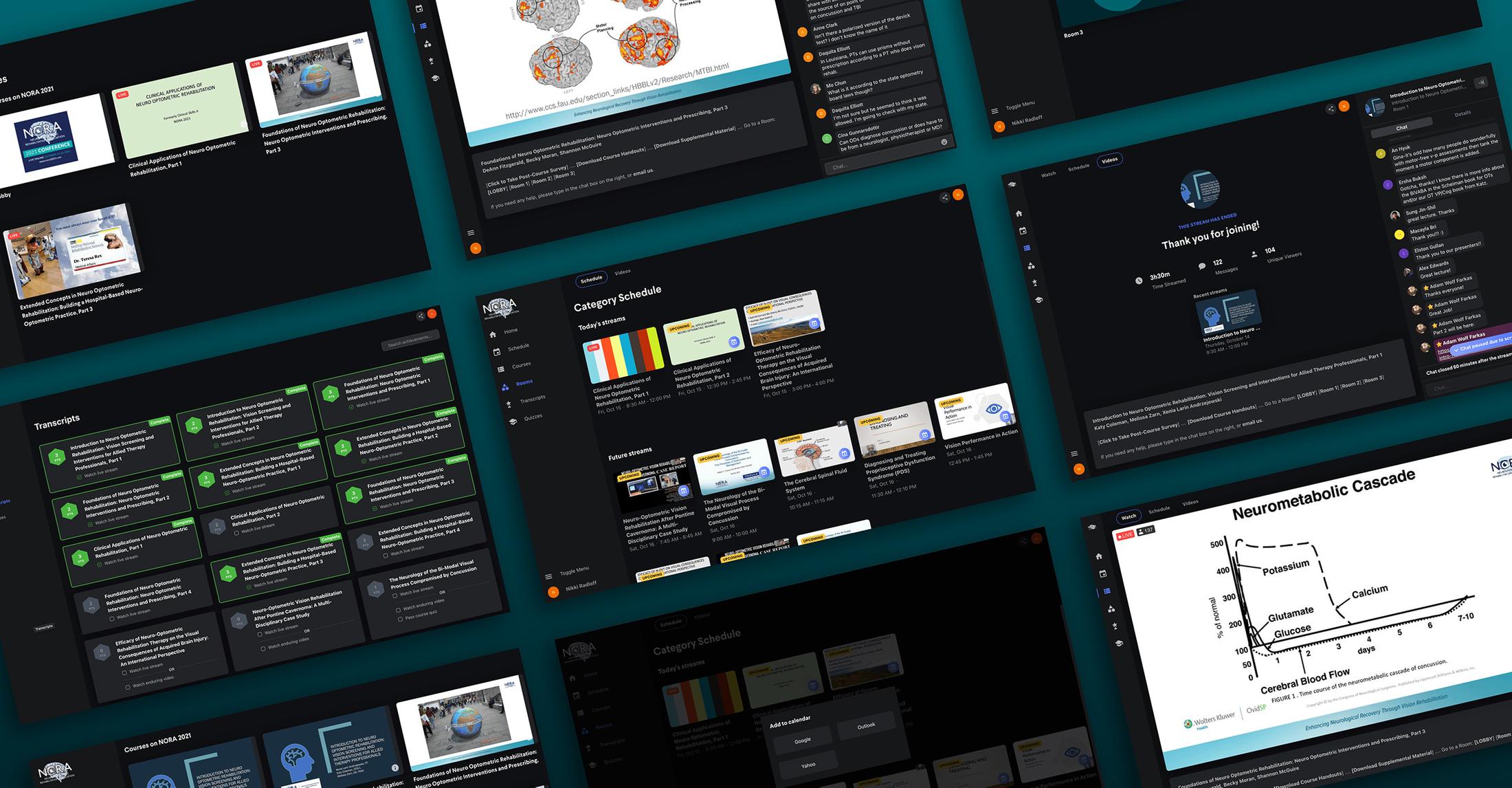 The NORA annual conference (Neuro-Optometric Rehabilitation Association) is an event for eye care and other health care professionals who focus on rehabilitative services for individuals with traumatic brain injury. The multi-day event brings together professionals and key leaders in the medical fields. The event, historically hosted at a venue, was now a virtual event in 2021, and we were approached to provide a streaming solution tailored to their specific needs.