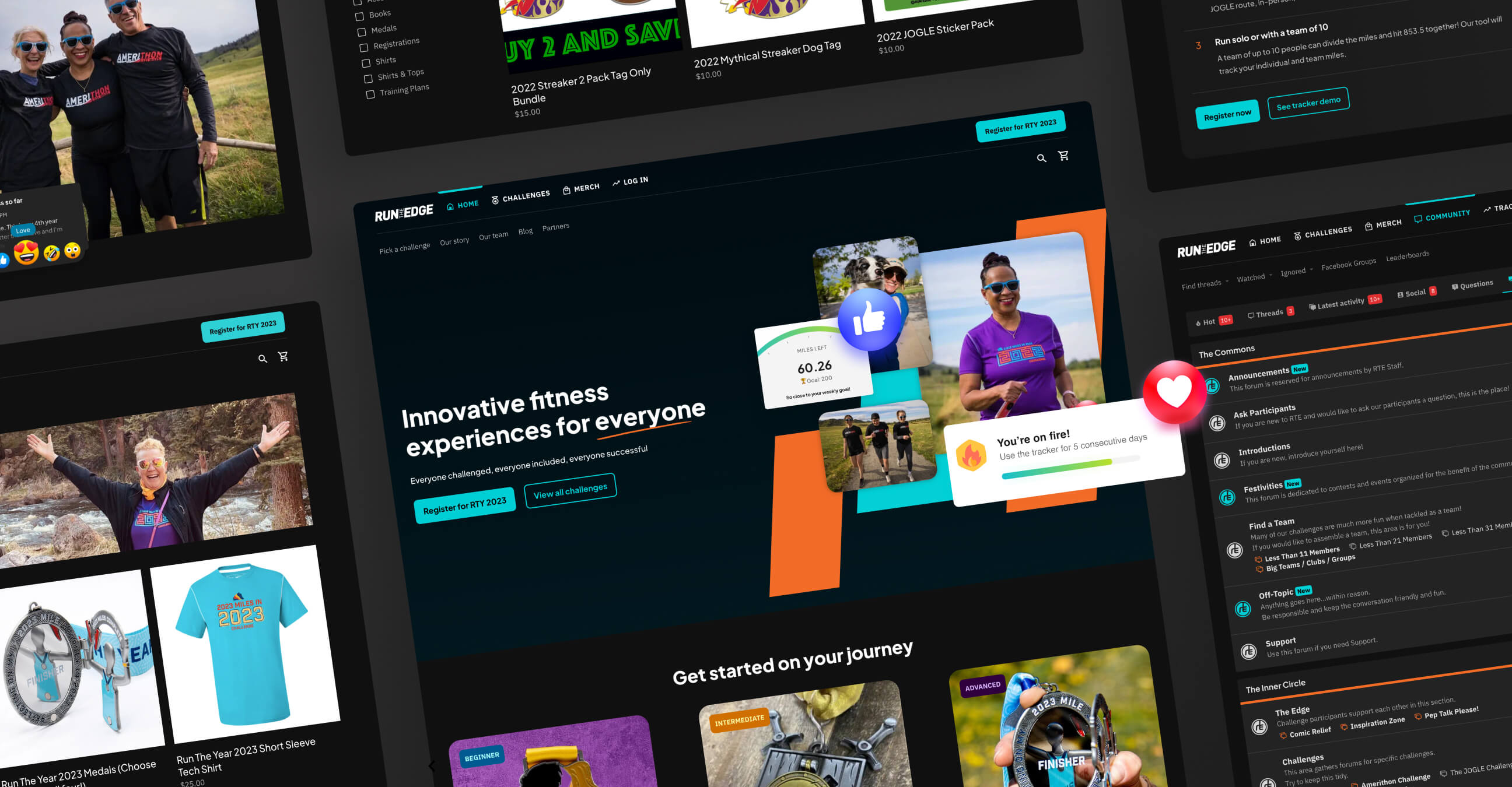 Founded by two professional runners, Run The Edge is dedicated to providing innovative fitness experiences and virtual challenges for their inclusive community of running enthusiasts. Launching in 2015 with their first virtual challenge that incurred over 25,000 signups, Run The Edge has become the industry pioneer of virtual fitness challenges. Over the years, the Shopify website had become cumbersome to update and no longer as intuitive to challenge participants. The Run The Edge team approached us to help resolve the user experience disconnect, address performance issues, and launch their brand new community.