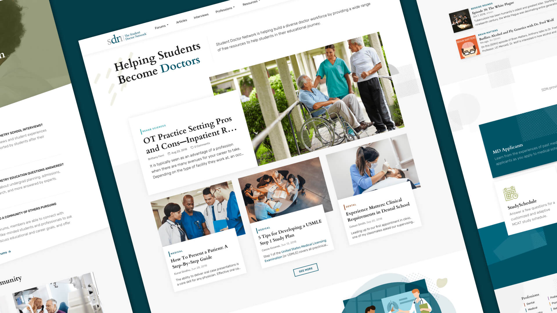 The key to the website design was adaptability. The new platform needed to scale well as the company continues to grow and expand its library of resources. Student Doctor Network had a variety of media types: blog articles, interviews, podcasts, resources, forum posts, and more that we had to contend with. That meant the visuals needed to be flexible in structure while feeling approachable and reflecting how simple, yet powerful the website is to use.